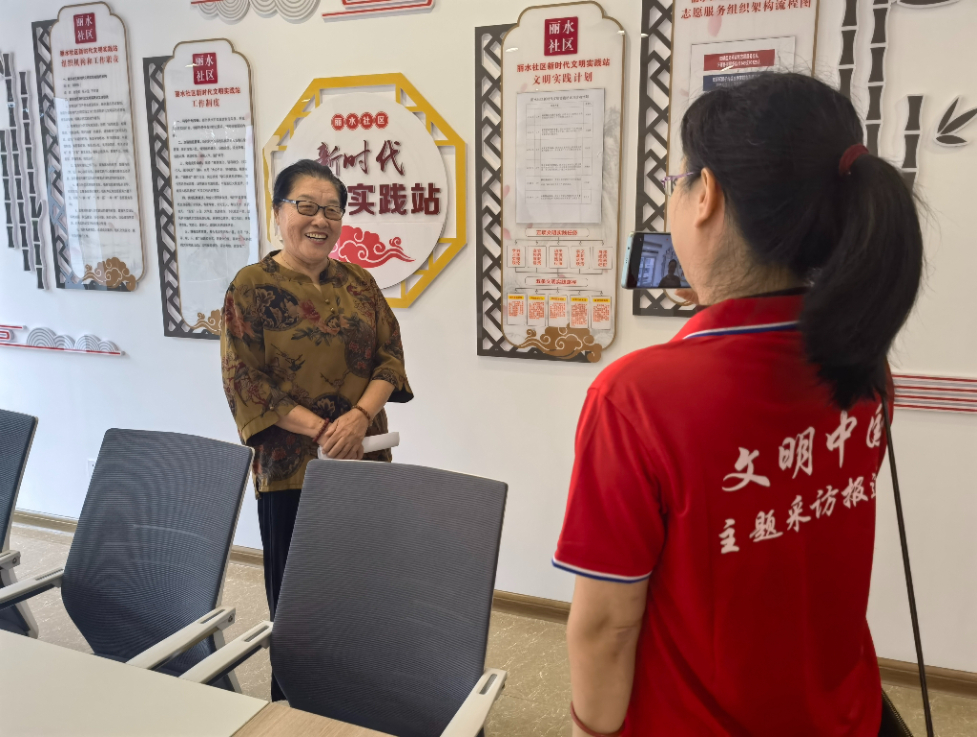 陈彦娴(右一)接受“文明中国”主题采访报道组采访。安娜娟 摄