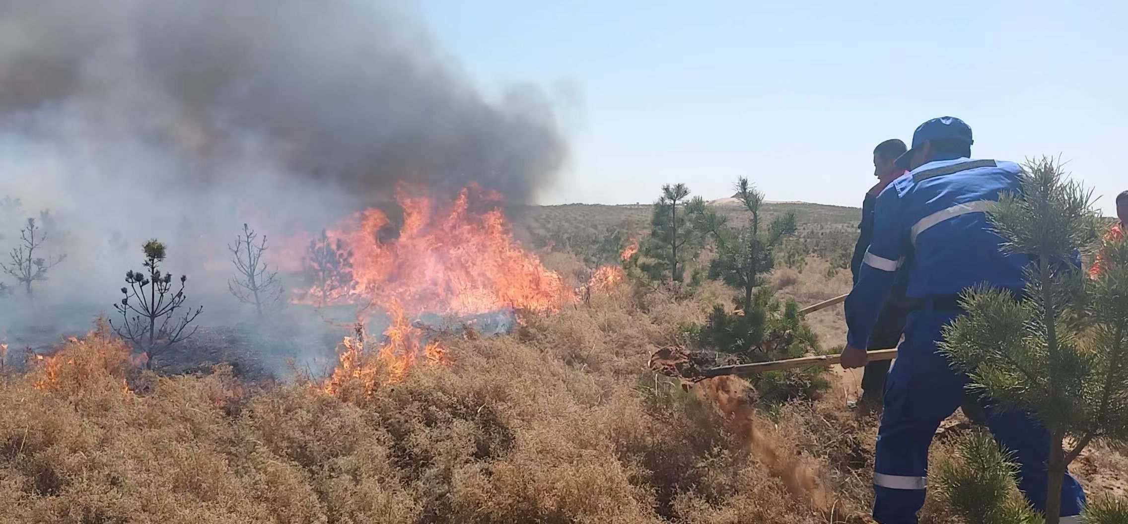 “中国好人”官聪带领应急救援志愿服务队员们在抢险救灾一线。吴忠市文明办供图