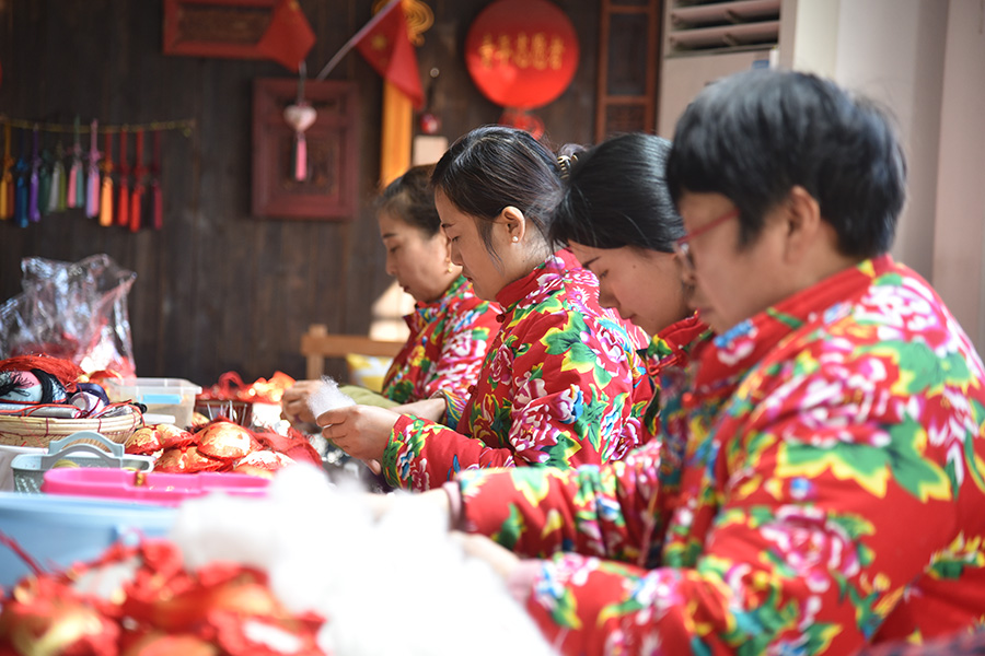 “目前,马庄香包产业有30多大类,100多小类。根据市场需求,不断开发新产品,和高校及公司合作,努力完成今年销售收入两千万目标,解决村民家门口致富就业工作,真正把小香包做成大产业。” 马庄村党委书记毛飞说。